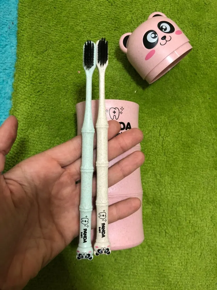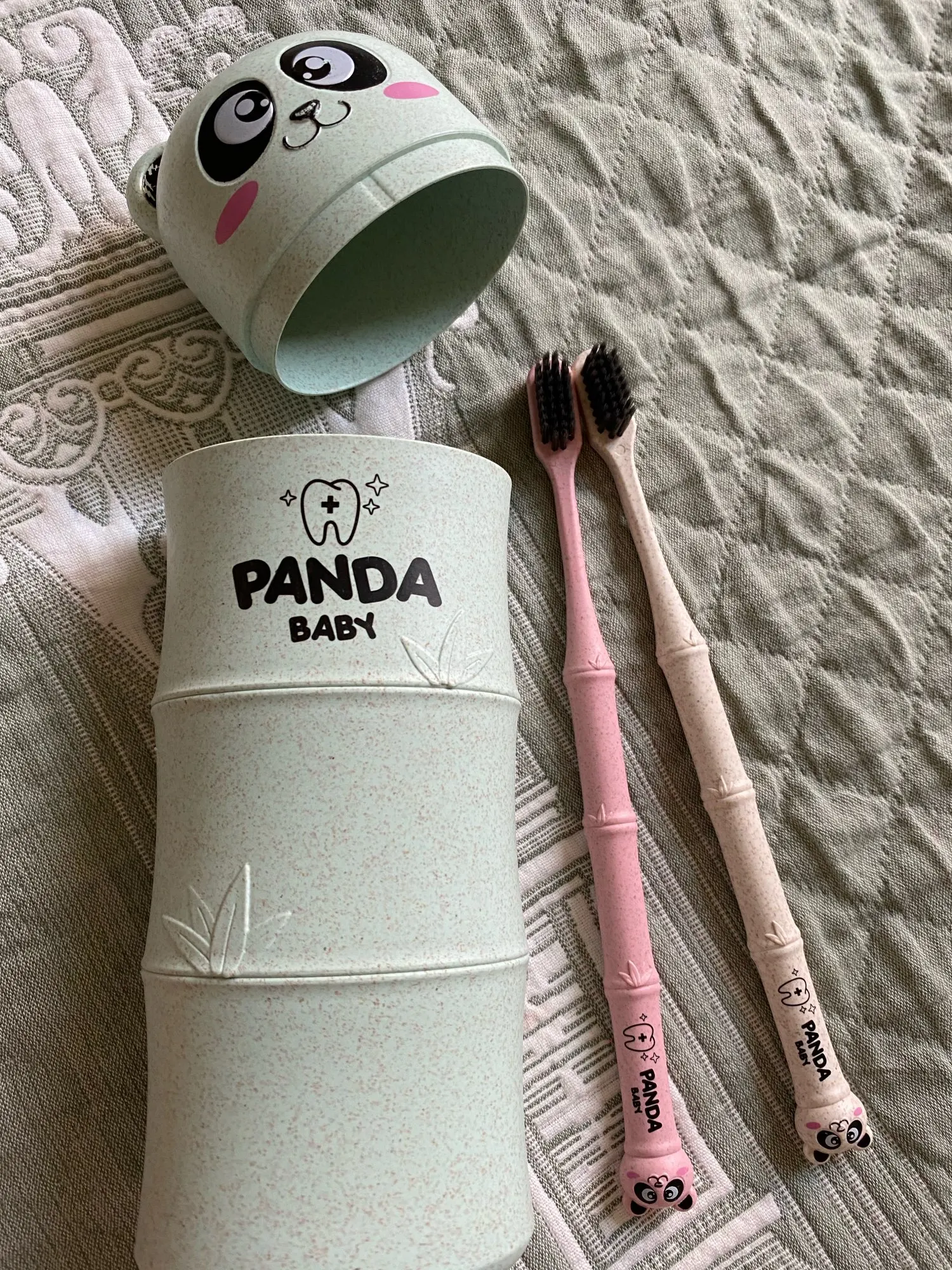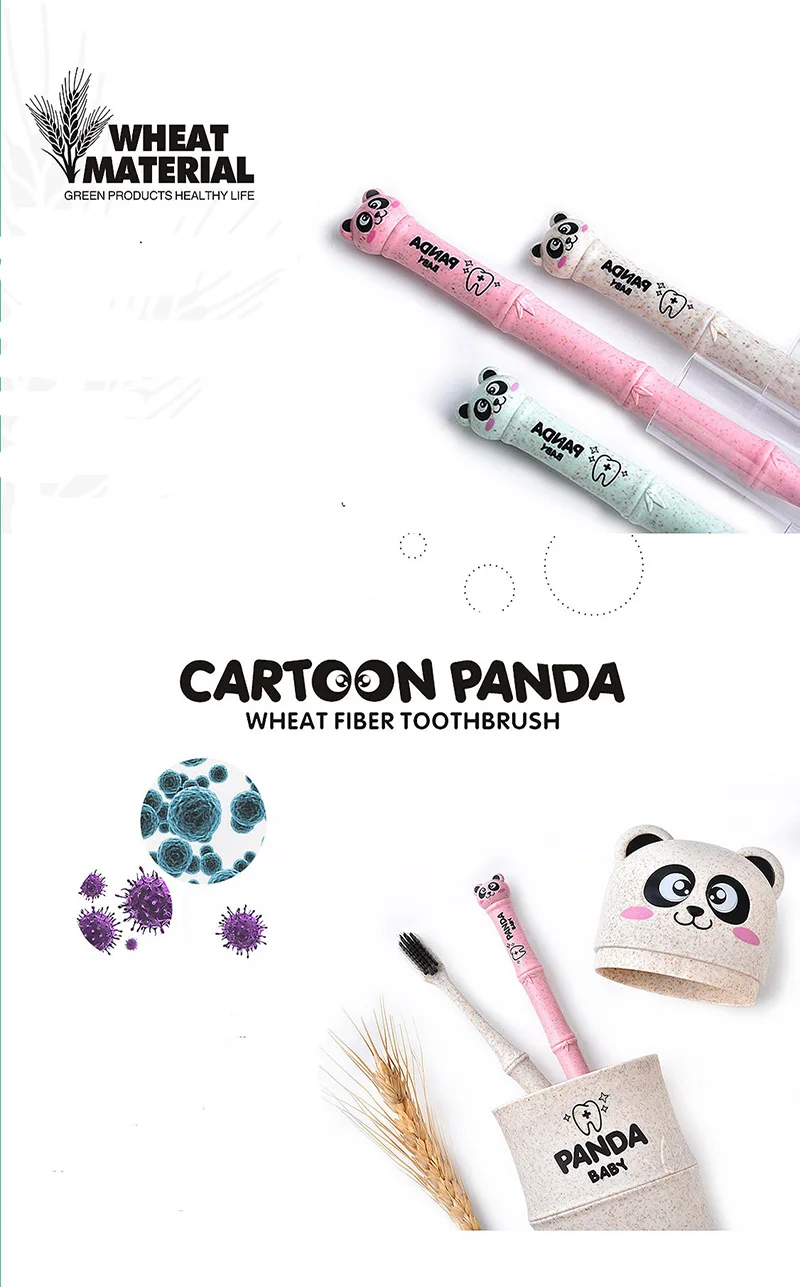 New 3pcs in One Set Panda Toothbrush Travel Suit Random Color For Toothbrush Wheat Straw Safety Nano-antibacterial Kit