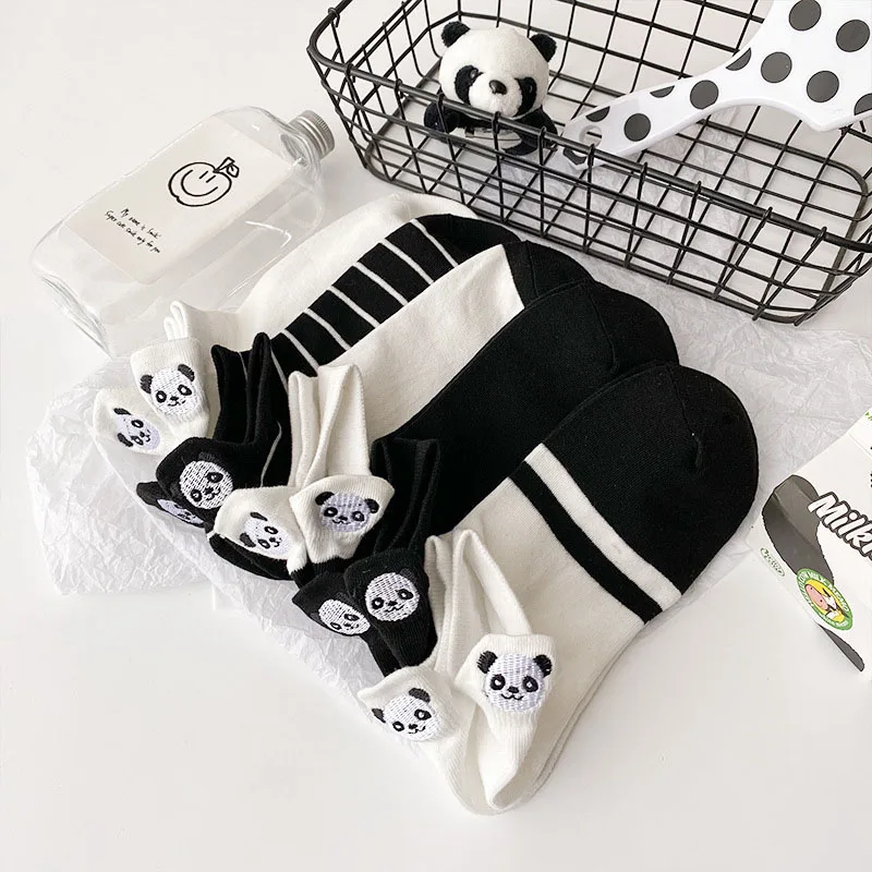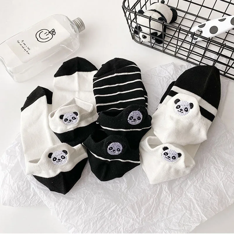 Cute Embroidery Panda Funny Socks Women Harajuku Divertidos Design Kawaii Crew Calcetines Mujer Ankle Sokken Chaussette Femme