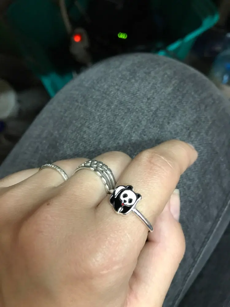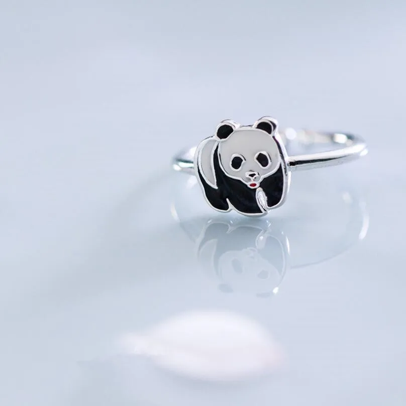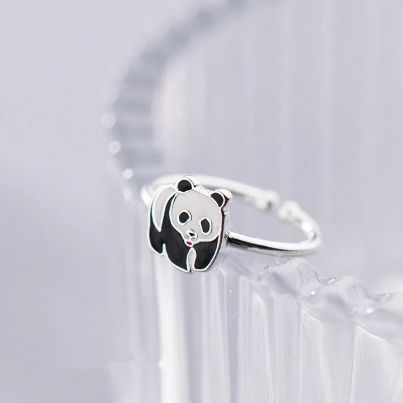 Panda Adjustable Rings For Women 925 Sterling Silver Ring