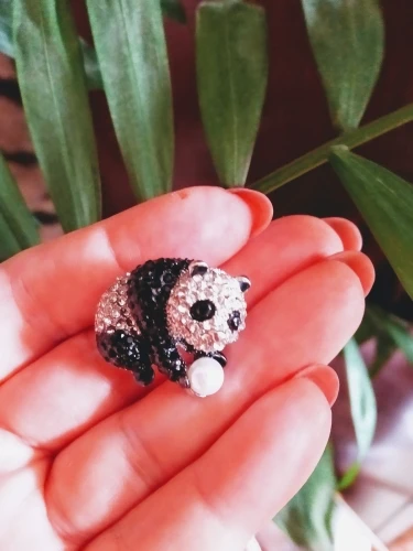 Little cute panda. Bulk. All shimmers, the photo does not convey the whole mile. The buckle is comfortable. Delivered quickly. At customs, the parcel was combined with several other packages. No damage. I recommend the store. I order not the first time and always everything is impeccable.