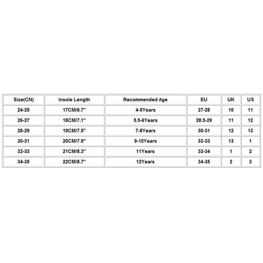 | Size(CN) | Insole Length | Recommended Age | EU | UK | US |