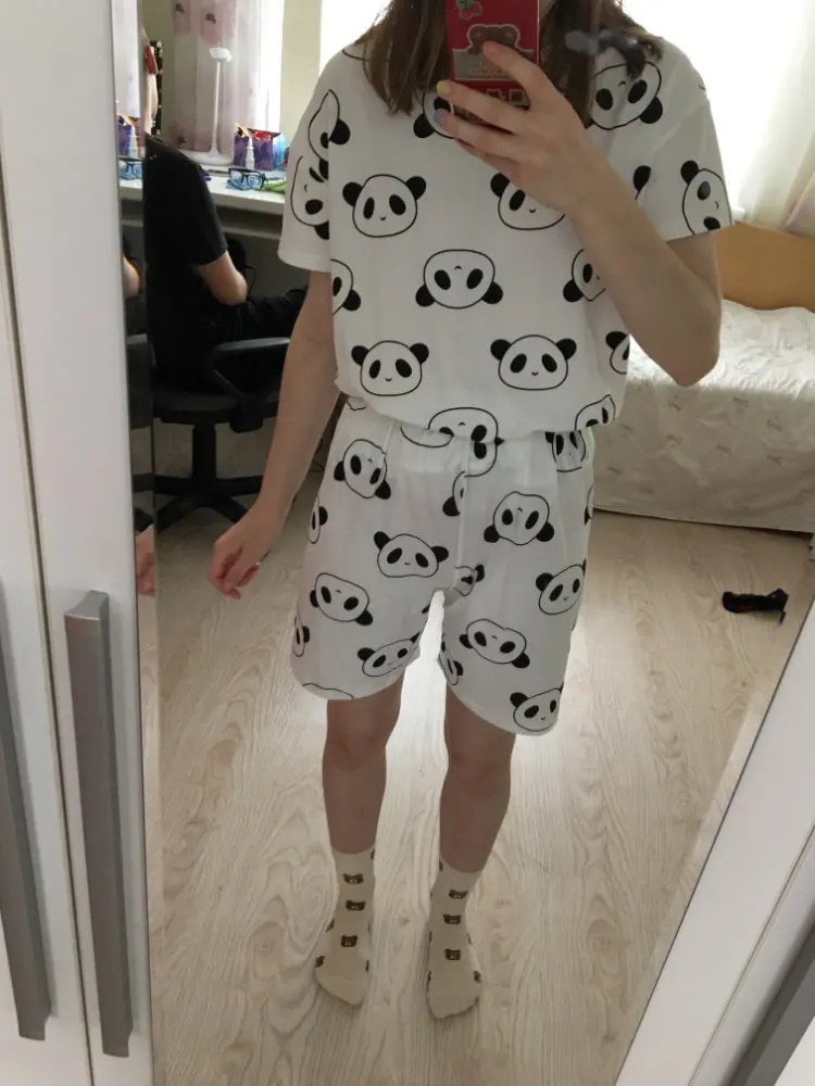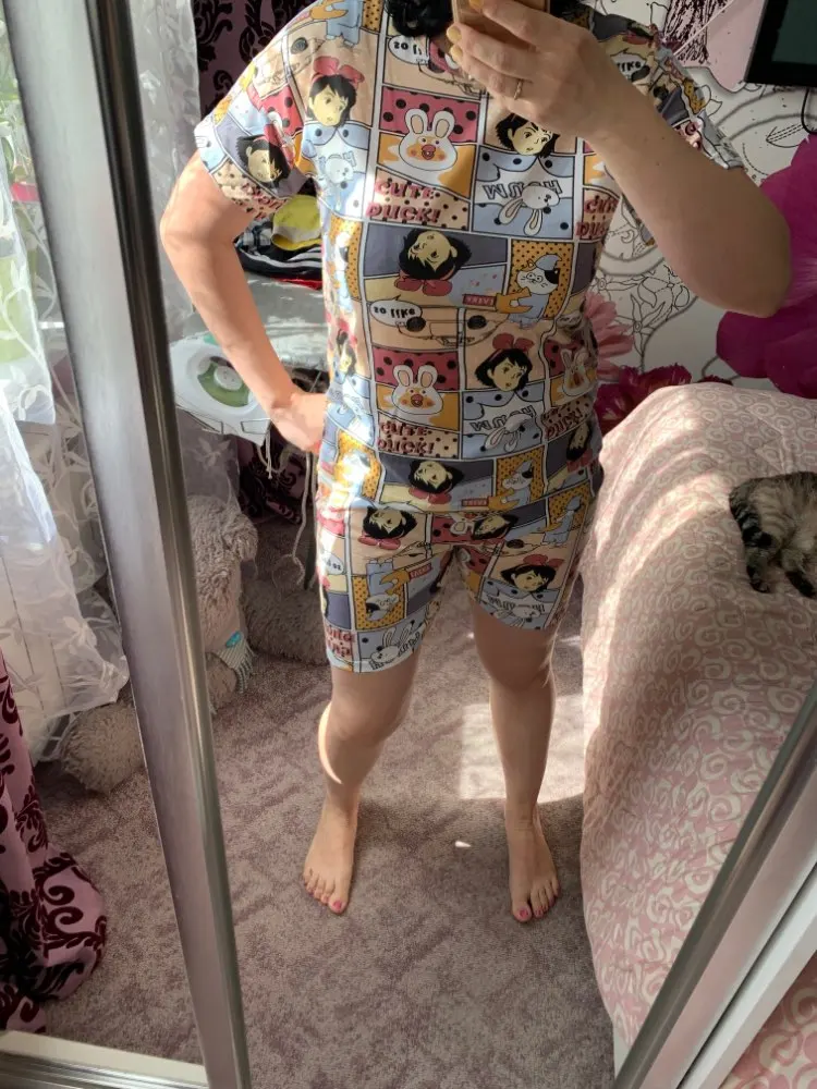 Good pajamas, I liked the quality, a girl with a height of 164 cm, weighing 52 kg size L came up perfectly. T-shirt is long enough, a good set